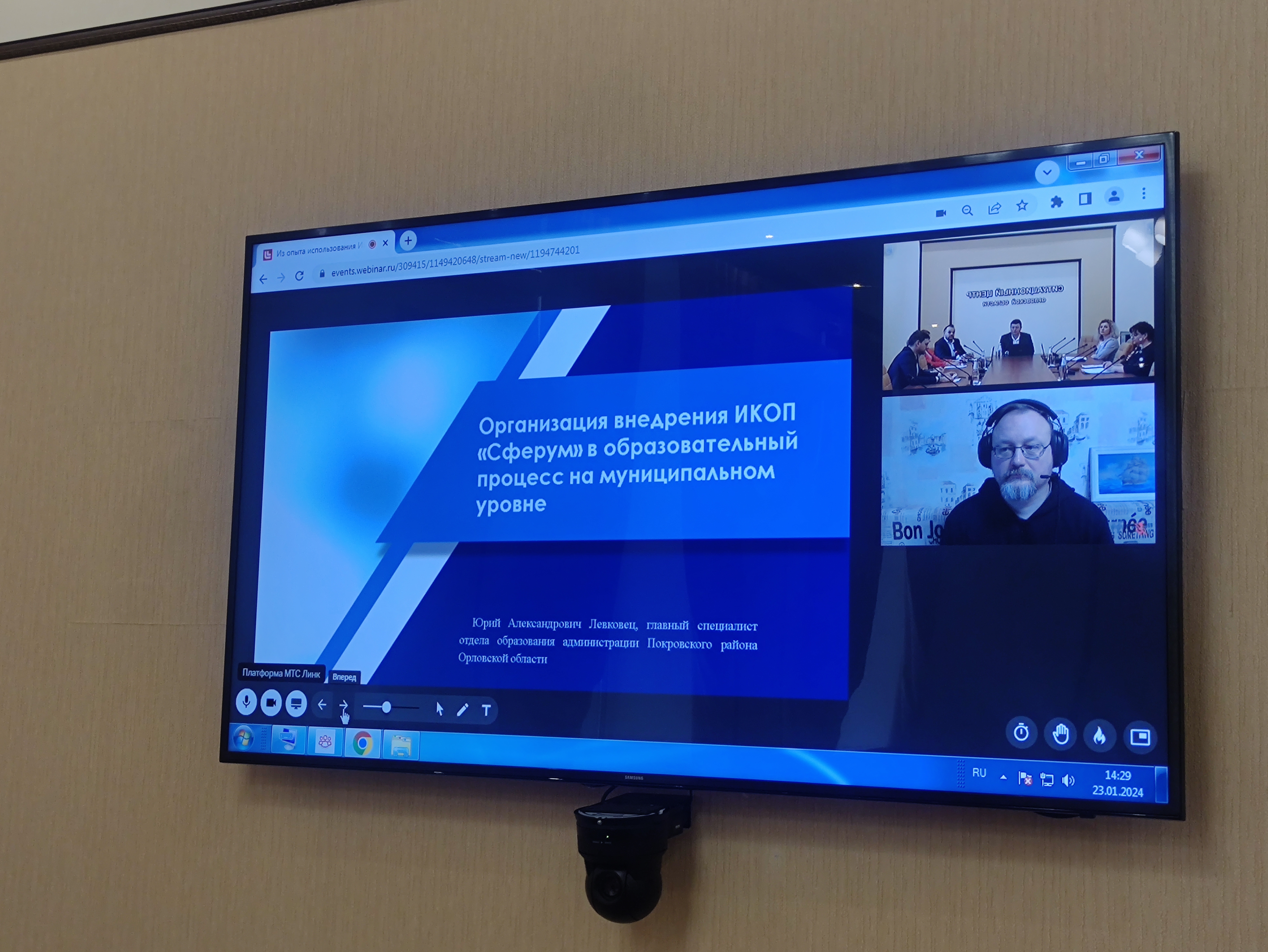 На ВКС главный специалист отдела образования администрации Покровского района Юрий Левковец, директор МБУ ДО «Свердловский центр детского творчества» Свердловского района Марина Толкунова, учитель МБОУ «Успенская основная общеобразовательная школа» Покровского района Любовь Панова представили свой опыт работы в ИКОП «Сферум».