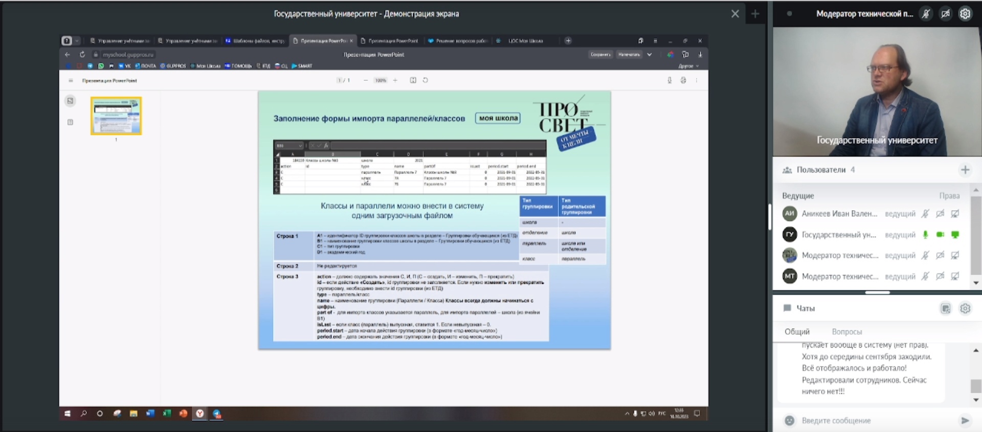 10 октября 2023 года состоялся обучающий вебинар для региональных и муниципальных координаторов, администраторов образовательных организаций, организованный Центром методической поддержки пользователей ФГИС «Моя школа» ФГБОУ ВО «Государственный университет просвещения».