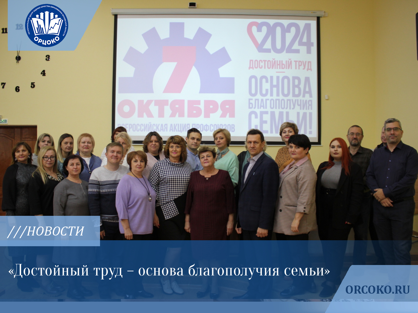 Под таким девизом проходит 7 октября 2024 года Всероссийская акция профсоюзов в рамках Всемирного дня действий «За достойный труд!». Первичная профсоюзная организация бюджетного учреждения Орловской области «Региональный центр оценки качества образования» присоединилась к Всероссийской акции. Благополучие семьи – благополучие страны.