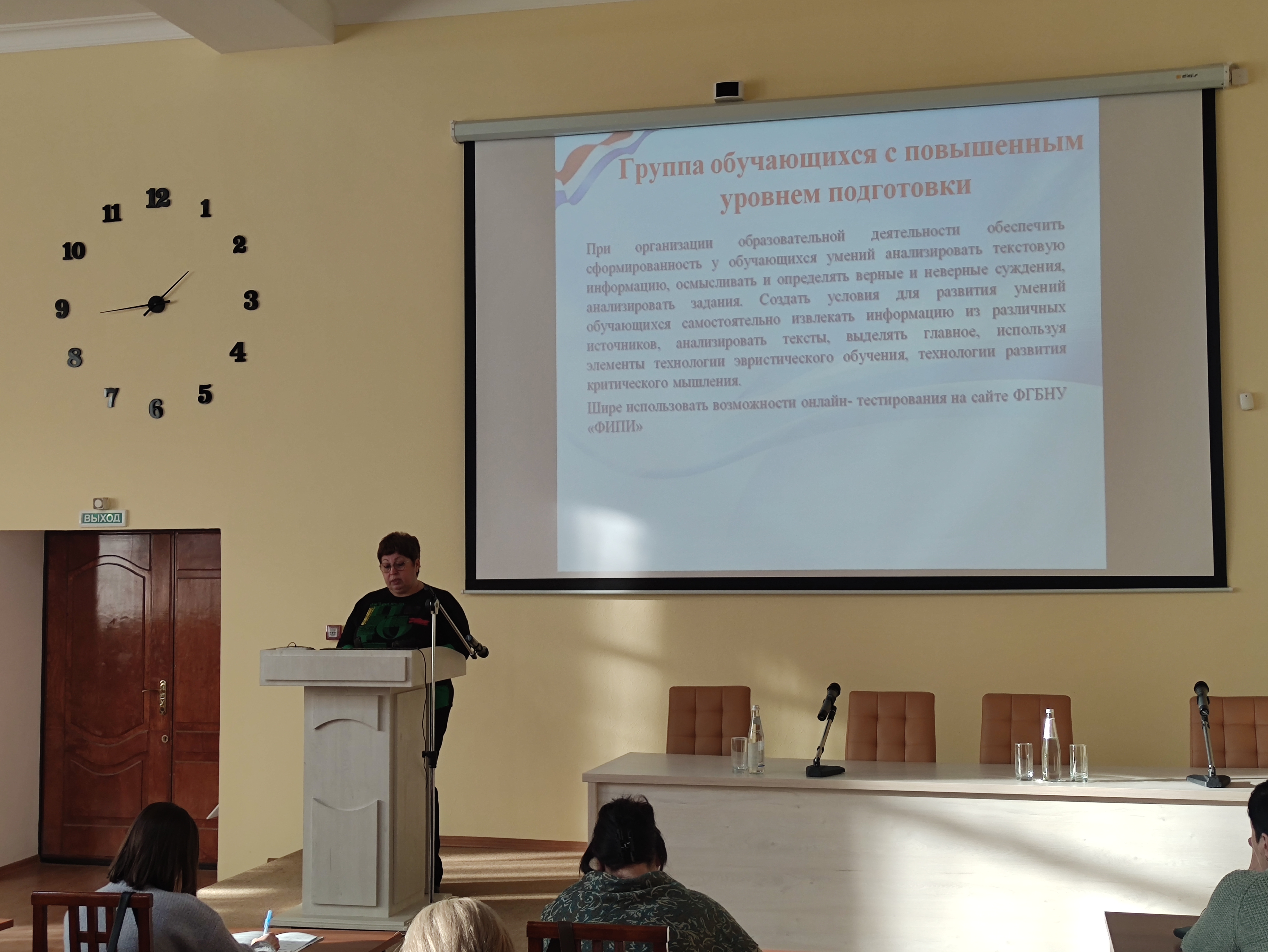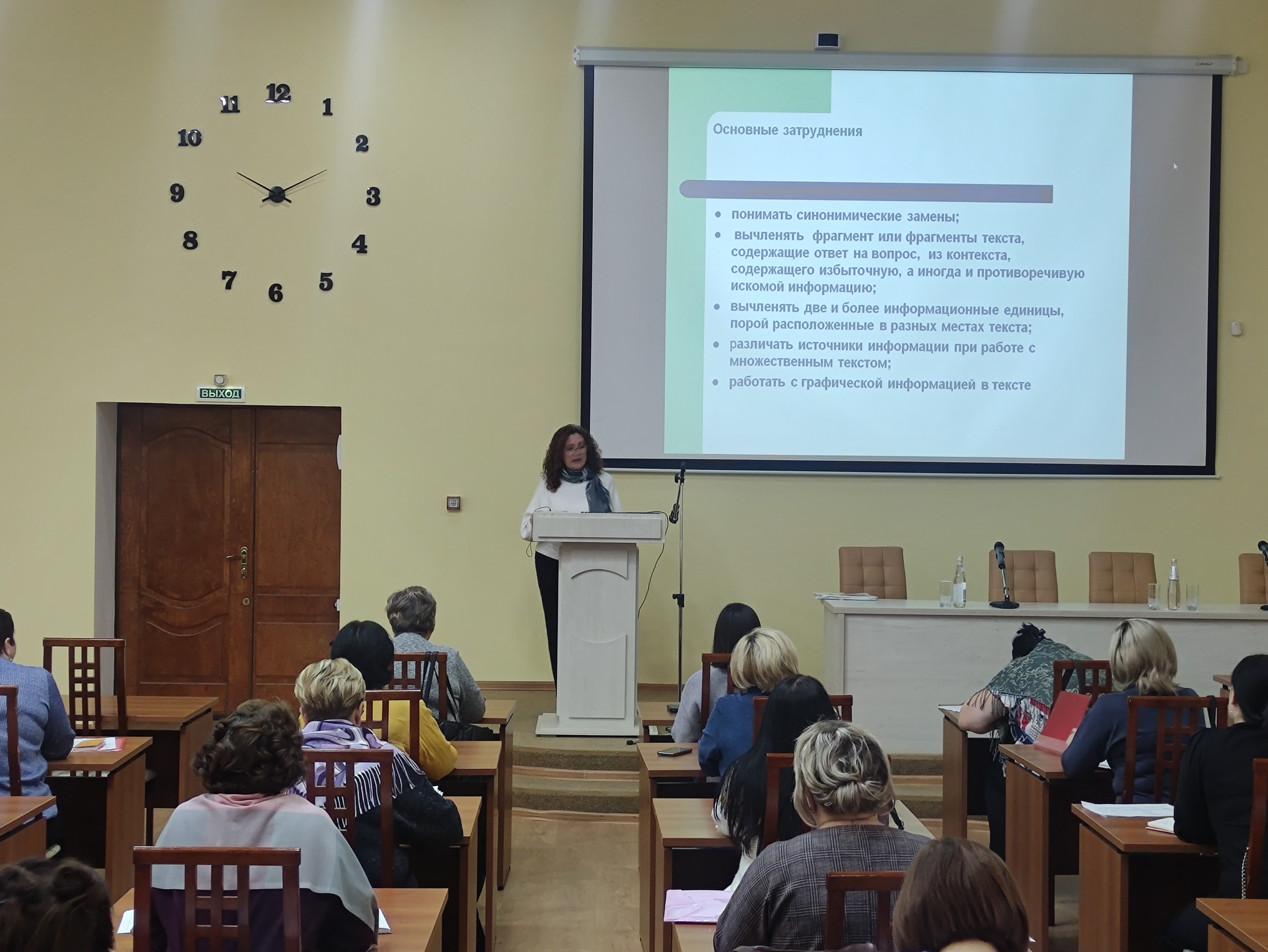 Кандидат филологических наук, доцент кафедры технологии и методики обучения предметов бюджетного учреждения Орловской области «Институт развития образования» Мелихова Юлия Викторовна подробно остановилась на трудностях понимания текста, которые испытывают школьники, в частности, понимать синонимические замены, вычленять фрагмент текста, содержащий ответ на вопрос, различать источники при работе с множественным текстом, работать с графической информацией.