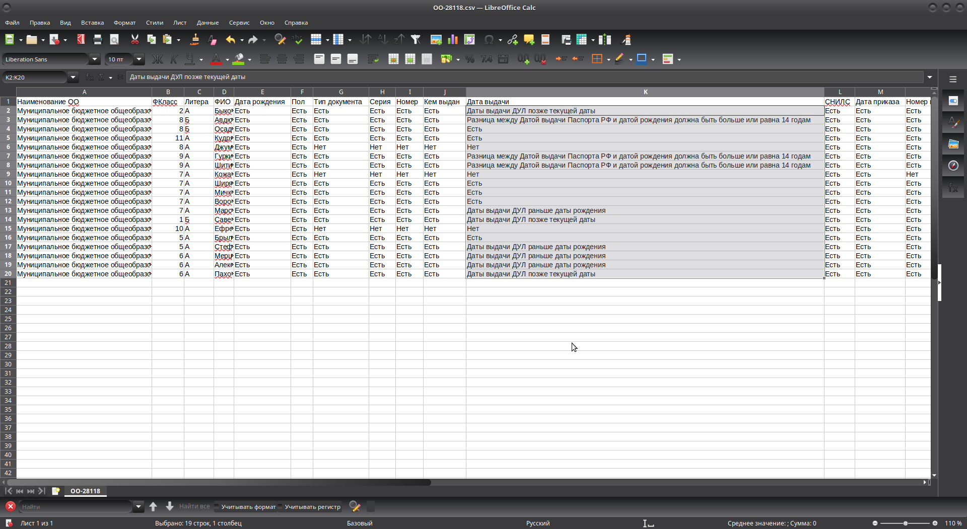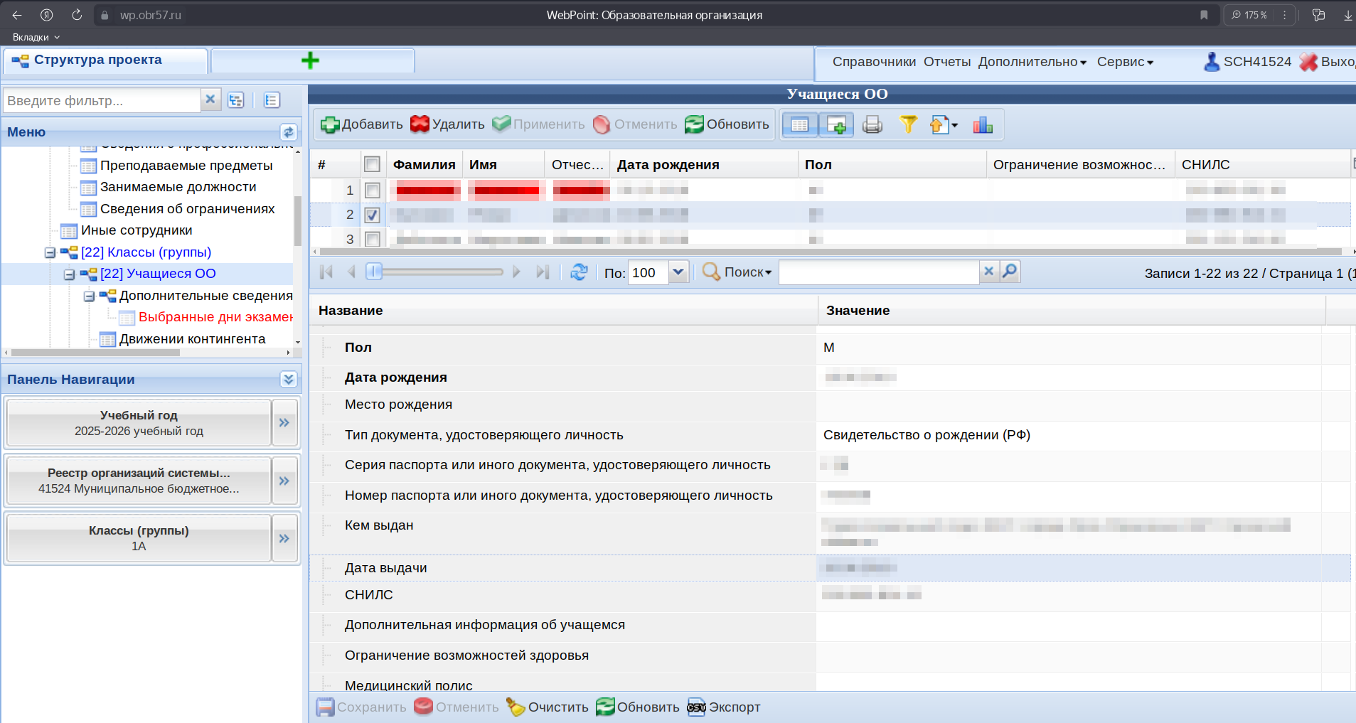 В ходе мероприятия рассмотрен функционал для проверки корректности данных обучающихся. Операторы общеобразовательных организаций имеют доступ к еженедельной выгрузке «Анализ качества данных», доступной в закрытой части РГИС «Образование — 57». С помощью этой выгрузки можно выявить ошибки разной направленности: ученики без отметок за контрольные работы, уроки без домашнего задания, ошибки в документах обучающихся и родителей и т. д.