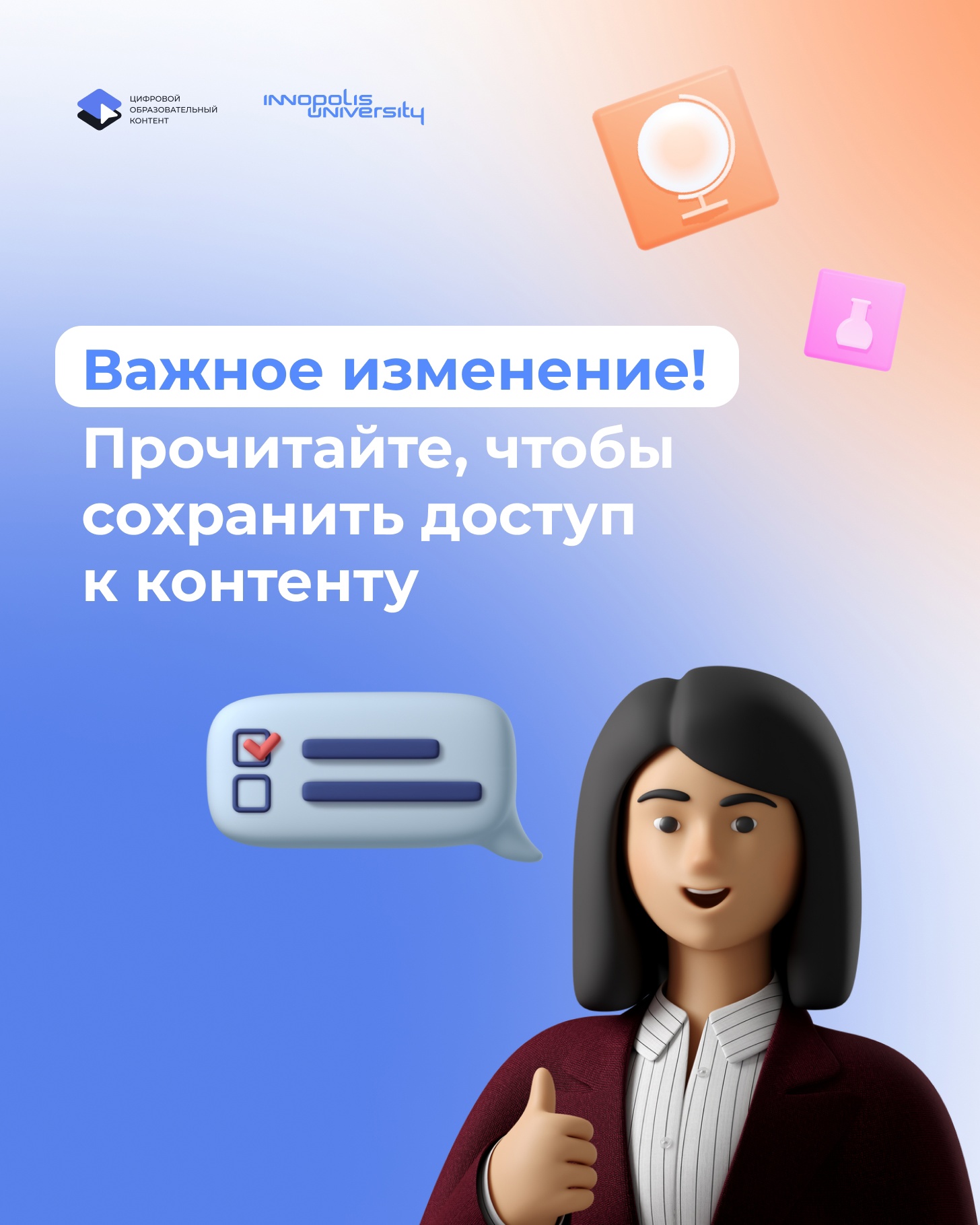 Платформа «Цифровой образовательный контент» информирует о важных изменениях работы сайта. Изменения функционала работы платформы могут привести к приостановлению бесплатного доступа к контенту у учеников.
