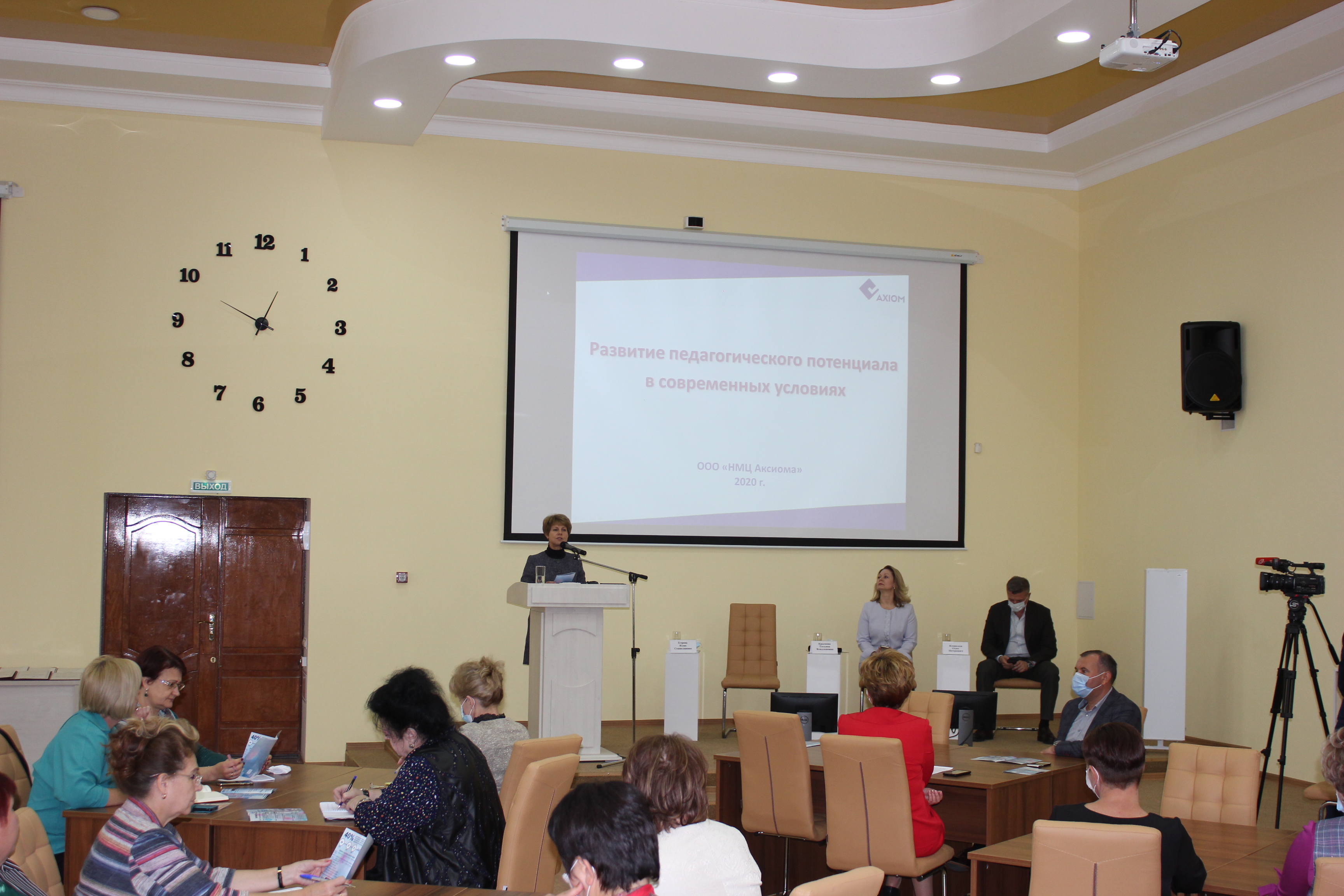С основными направлениями развития педагогического потенциала в современных условиях, особенностями организационно-технологического обеспечения независимых диагностик познакомила собравшихся директор научно-методического центра «Аксиома» Юлия Станиславовна Егорова.