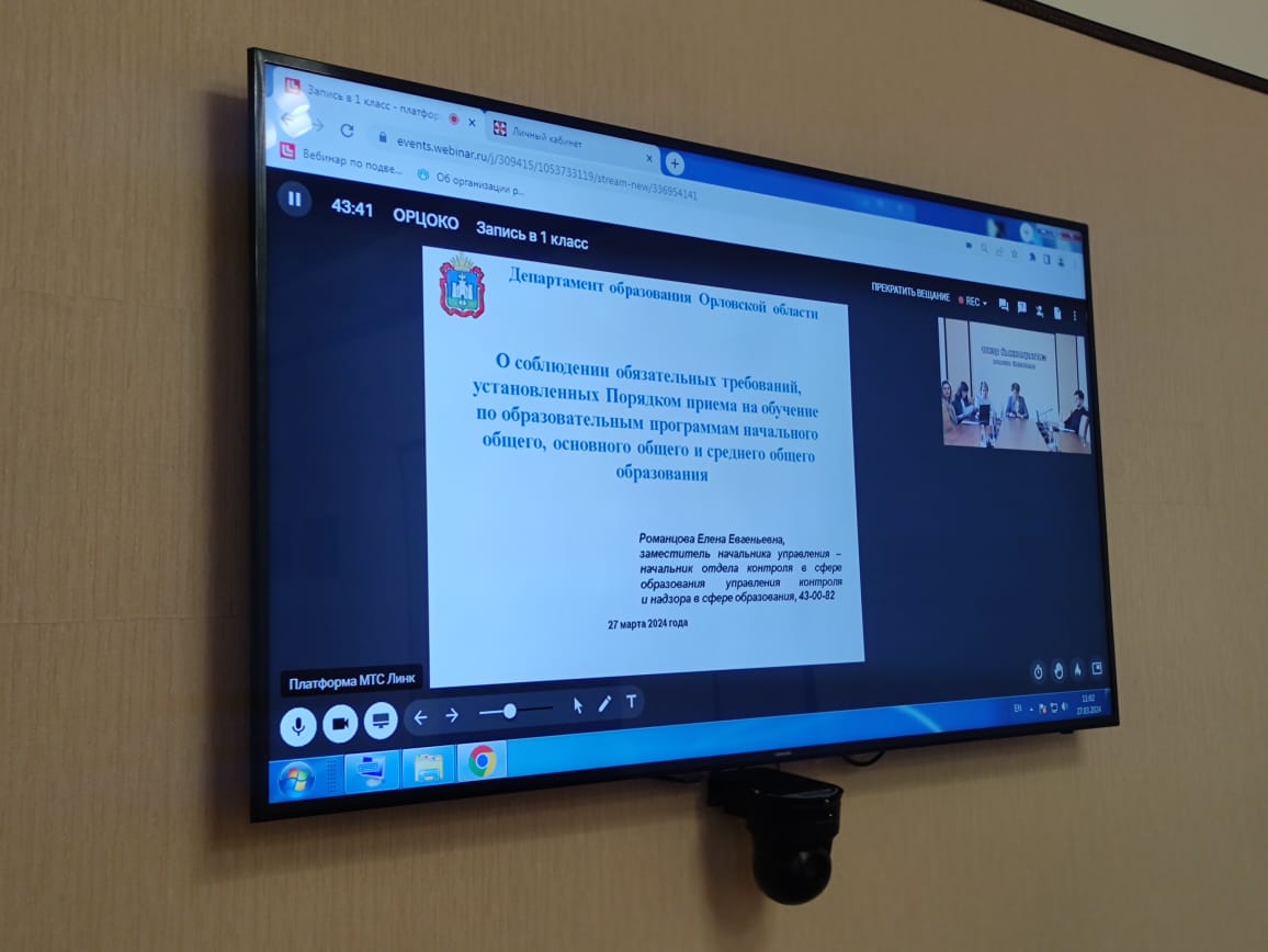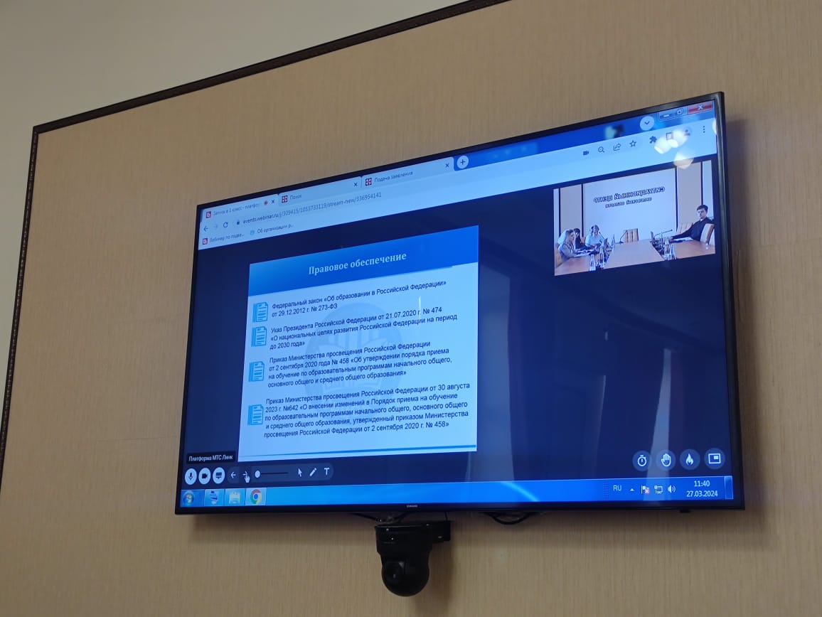 27 марта 2024 года в целях организации приема заявлений по услуге «Прием заявлений о зачислении в государственные и муниципальные образовательные организации субъектов Российской Федерации, реализующие программы общего образования», состоялось онлайн-совещание в формате ВКС по теме «Запись в 1 класс».