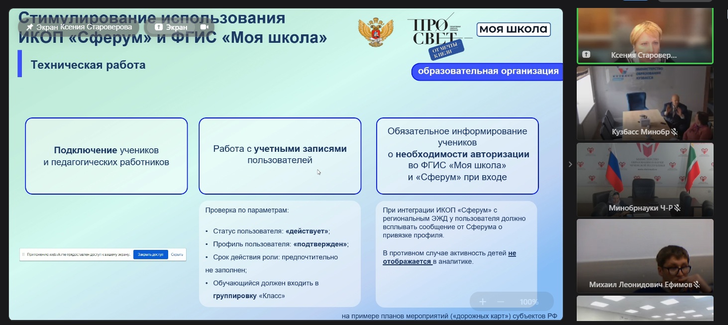 В ходе мероприятия участники обсудили вопросы внедрения ФГИС «Моя школа» и ИКОП «СФерум», поделились опытом и лучшими практиками в области создания современной и безопасной цифровой образовательной среды.