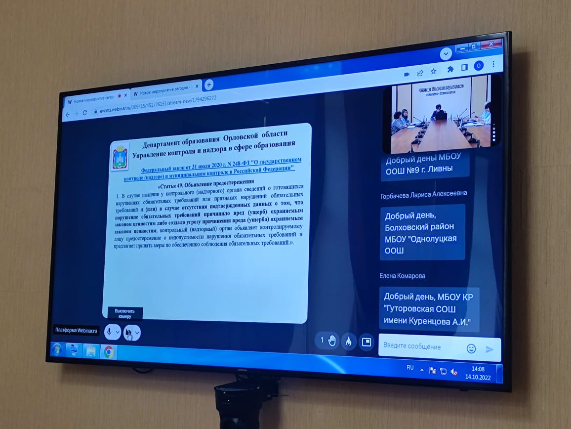 Сегодня, 14 октября 2022 года, на базе Регионального центра оценки качества образования состоялось рабочее совещание в режиме видеоконференцсвязи, проводимое Департаментом образования Орловской области, для руководителей муниципальных органов управления образованием и руководителей общеобразовательных организаций.