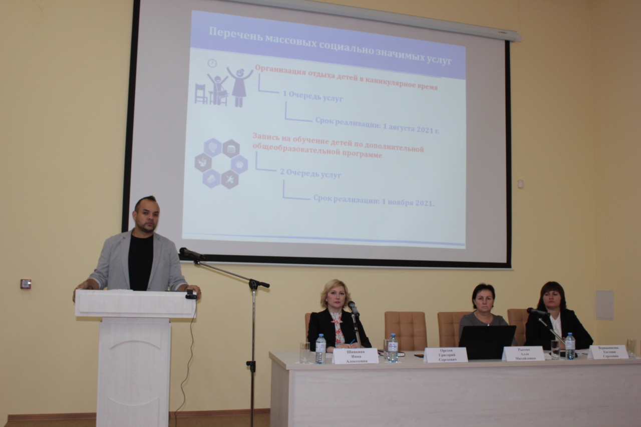 С Перечнем и Планом мероприятий по переводу массовых социально значимых государственных и муниципальных услуг в электронный формат ознакомил присутствующих Григорий Сергеевич Орехов, начальник отдела цифровой трансформации в сфере образования Регионального центра оценки качества образования.
