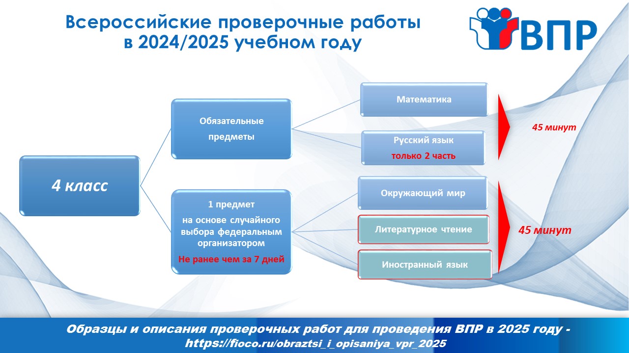 В ВПР по учебным предметам «Русский язык» и «Математика» принимают участие все обучающиеся 4 – 8 и 10 классов. Проверочная работа по русскому языку в 4 классе теперь состоит только из одной части, обучающиеся освобождаются от диктанта.