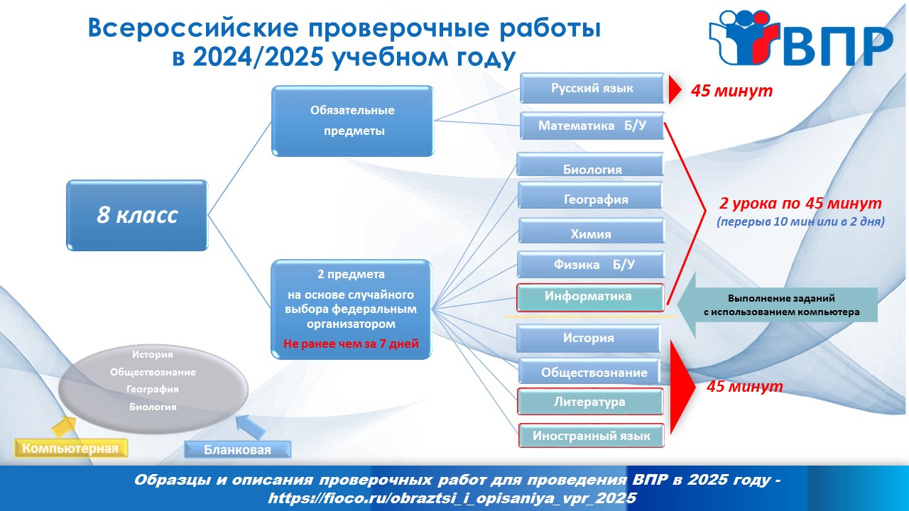 Появились в списке ВПР по учебным предметам на основе случайного выбора и новые: «Литературное чтение» в 4 классе, «Литература» в 5 – 8 и 10 классах, «Информатика» в 7 и 8 классах.