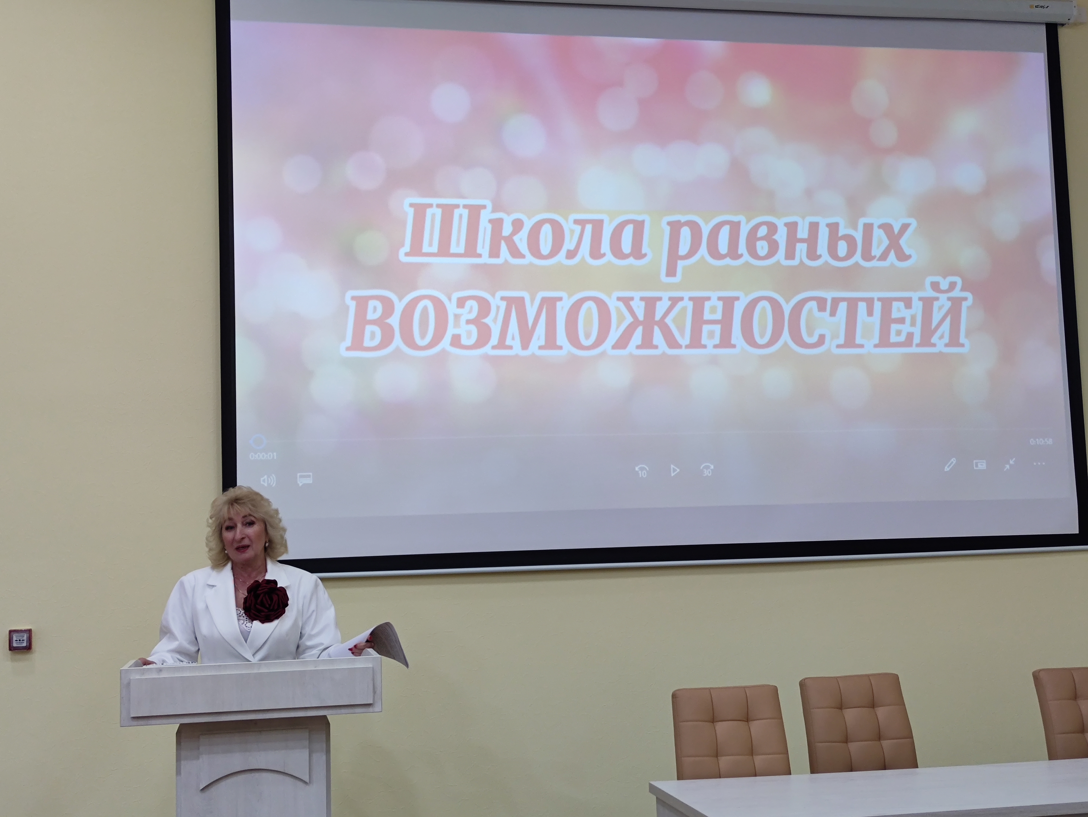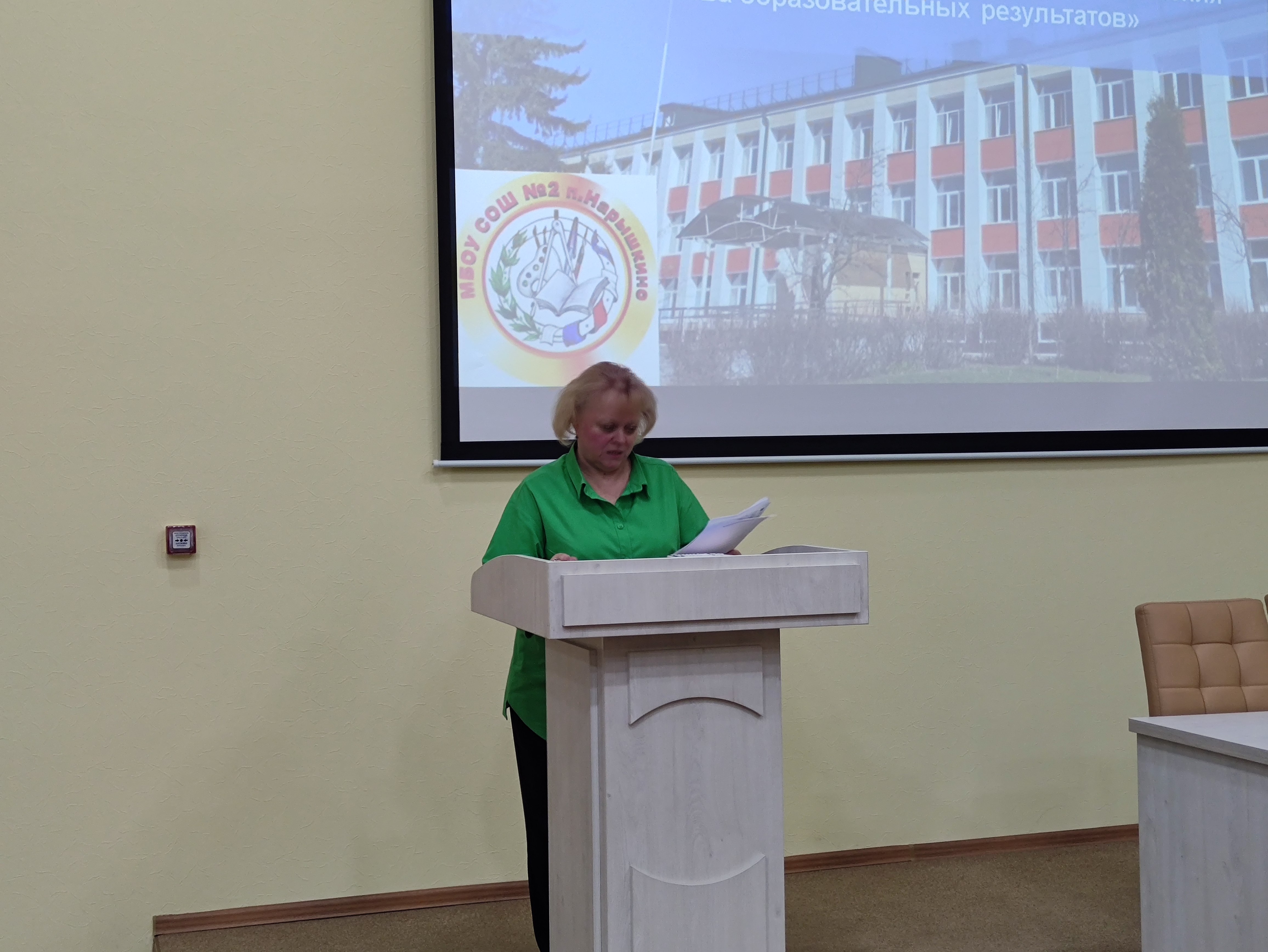 Опыт построения системы оценки, регулирования и подведения итогов реализации ВСОКО был представлен администрацией средней общеобразовательной школы № 2 п. Нарышкино Адаменко Л. В., которая подробно остановилась на функционировании школы полного дня, профильных классах, сообщила об управленческих решениях на основе данных ВСОКО.