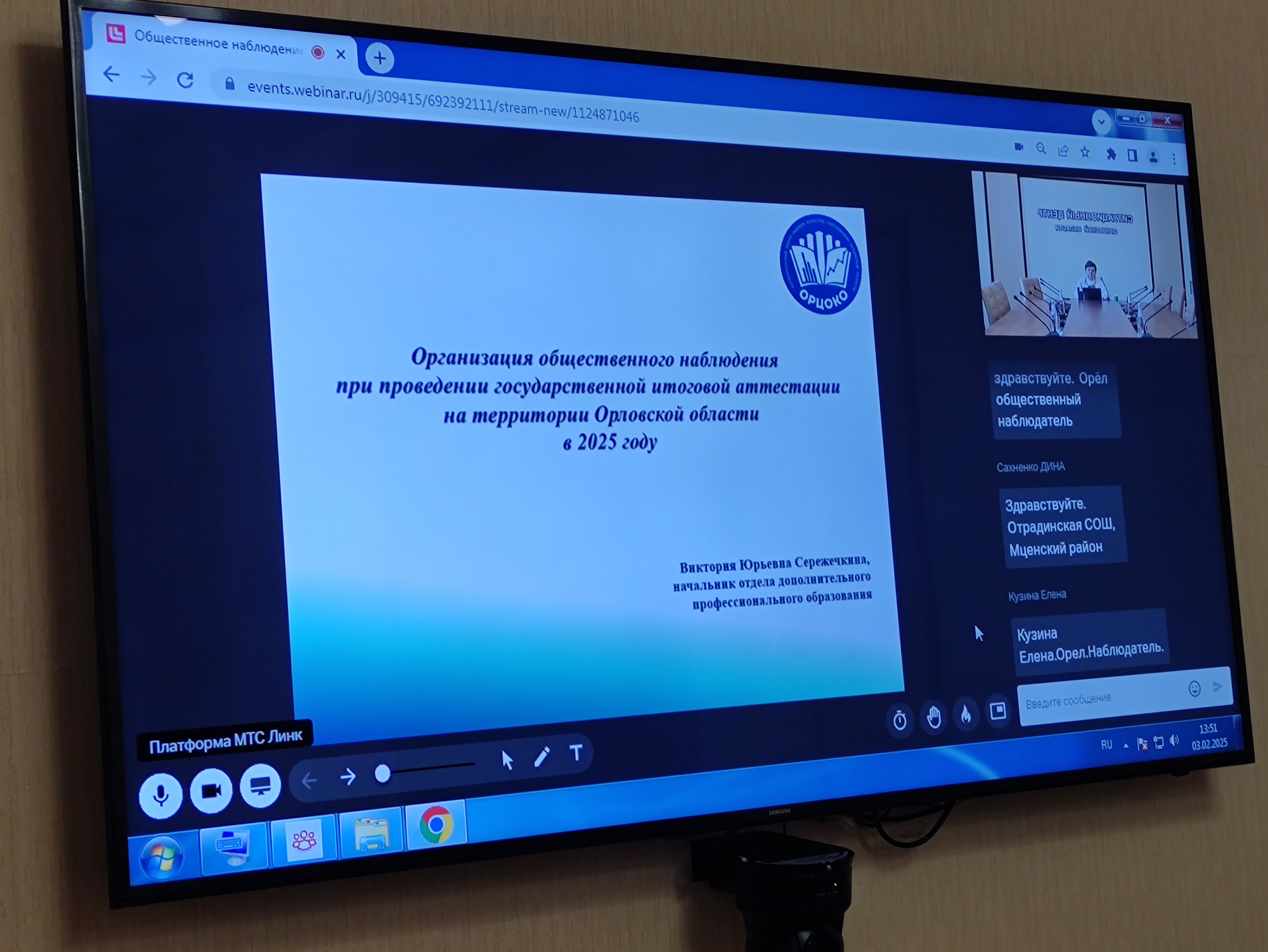 3 февраля 2025 года было проведено обучение граждан, изъявивших желание стать общественными наблюдателями при проведении государственной итоговой аттестации, процедур оценки качества образования и Всероссийской олимпиады школьников. Д. С. Логутеев, директор ОРЦОКО, подчёркивая важность подобных мероприятий, сказал: «Общественное наблюдение – один из методов обеспечения прозрачности и открытости процедуры проведения государственной итоговой аттестации, оценки качества образования и олимпиады школьников. Обучение организовано в целях исполнения требования повышения уровня объективности проведения ГИА, оценки качества образования, поэтому вопросам подготовки будущих общественных наблюдателей Департамент образования Орловской области уделяет очень серьёзное внимание».