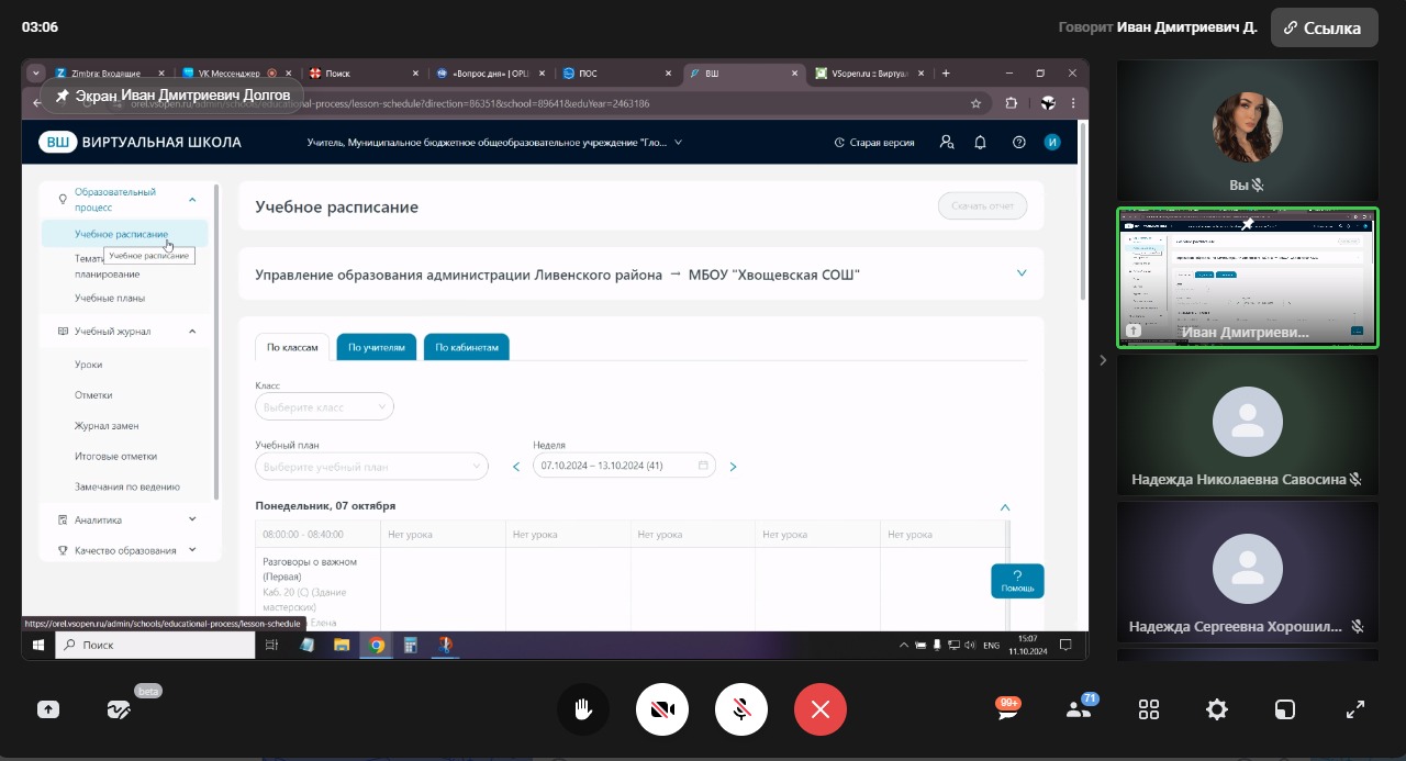 11 октября 2024 года специалисты Регионального центра оценки качества образования вновь провели «Цифровой час» для участников образовательного процесса города Мценска, Залегощенского, Новодеревеньковского, Кромского и Ливенского районов.