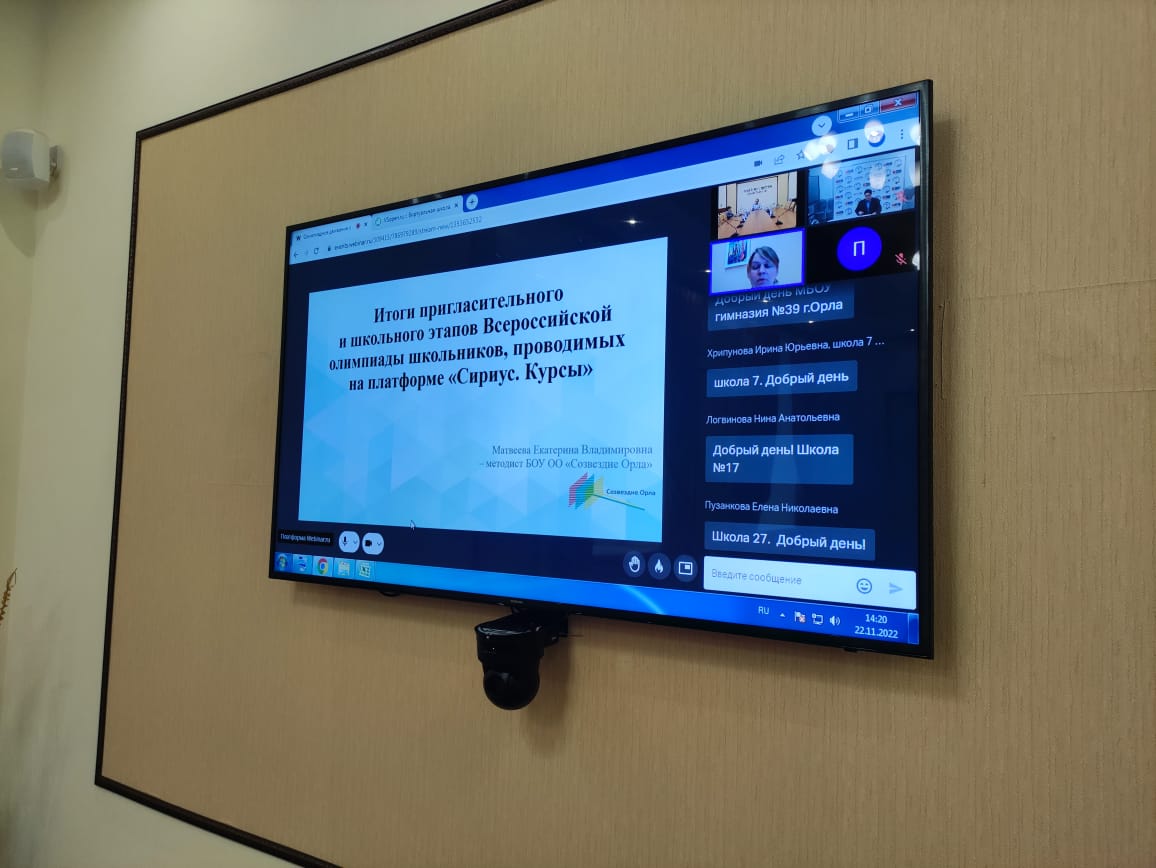 Об итогах проведения пригласительного и школьного этапов ВсОШ, проводимых на платформе «Сириус. Курсы», участников мероприятия ознакомила Екатерина Матвеева, методист бюджетного общеобразовательного учреждения Орловской области «Созвездие Орла».