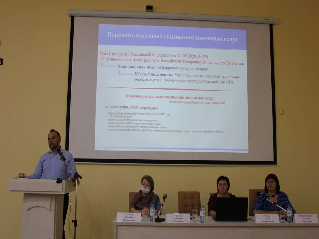 С Перечнем и Планом мероприятий по переводу массовых социально значимых государственных и муниципальных услуг в электронный формат ознакомил присутствующих Григорий Сергеевич Орехов, начальник отдела цифровой трансформации в сфере образования Регионального центра оценки качества образования.