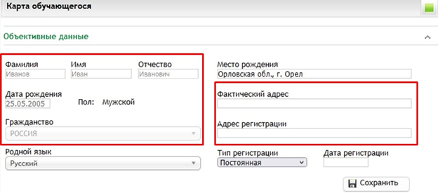 Также поля ФИО, дата рождения, пол, гражданство, фактический адрес и адрес регистрации станут неактивны.